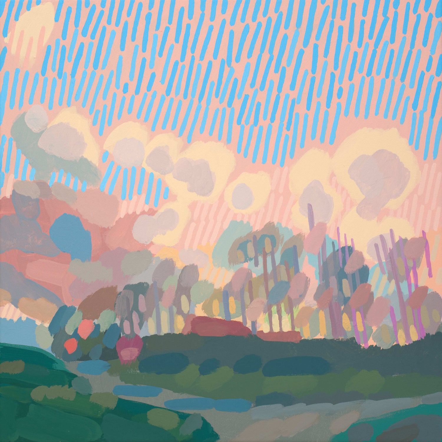 Malerei Wolkenfeld, handgemaltes Unikat, Natur, Landschaftsmalerei, Himmel, Acrylmalerei 40x40cm