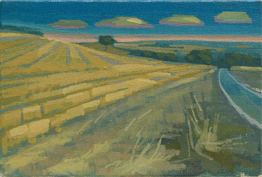 Original Gemälde – "Sommerfeld" - handgemalt – Acrylbild – 10x15 cm – Landschaft Bild – Einzelstück – mit Rahmen