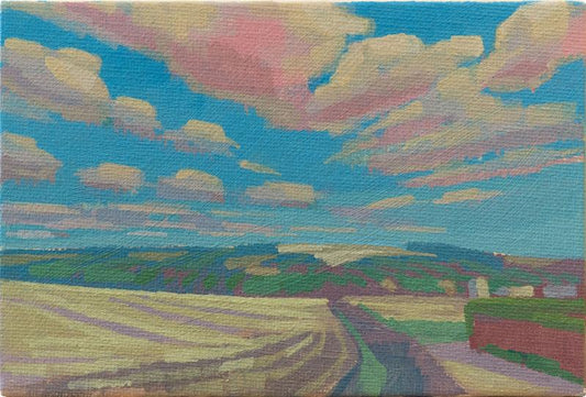Original Gemälde – "Wiese und Wolken" - handgemalt – Acrylbild – 10x15 cm – Landschaft Bild – Einzelstück – mit Rahmen