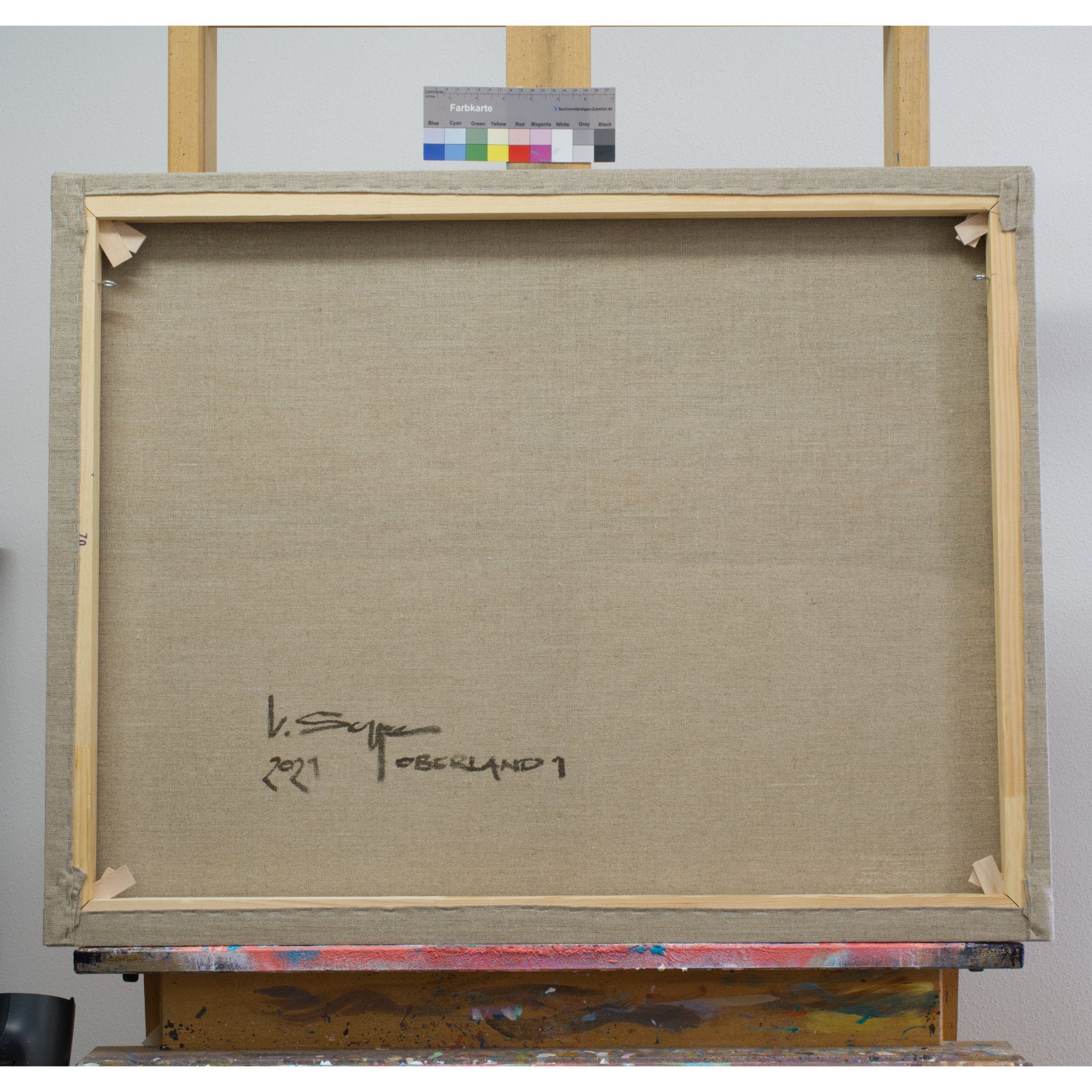 Gemalt mit hochpigmentierten Künstler-Acrylfarben auf Leinwand, aufgezogen auf einem Echtholz-Keilrahmen. Die Signatur mit Datum befindet sich auf der Rückseite, der Rahmen ha stabilde Aufhänger.