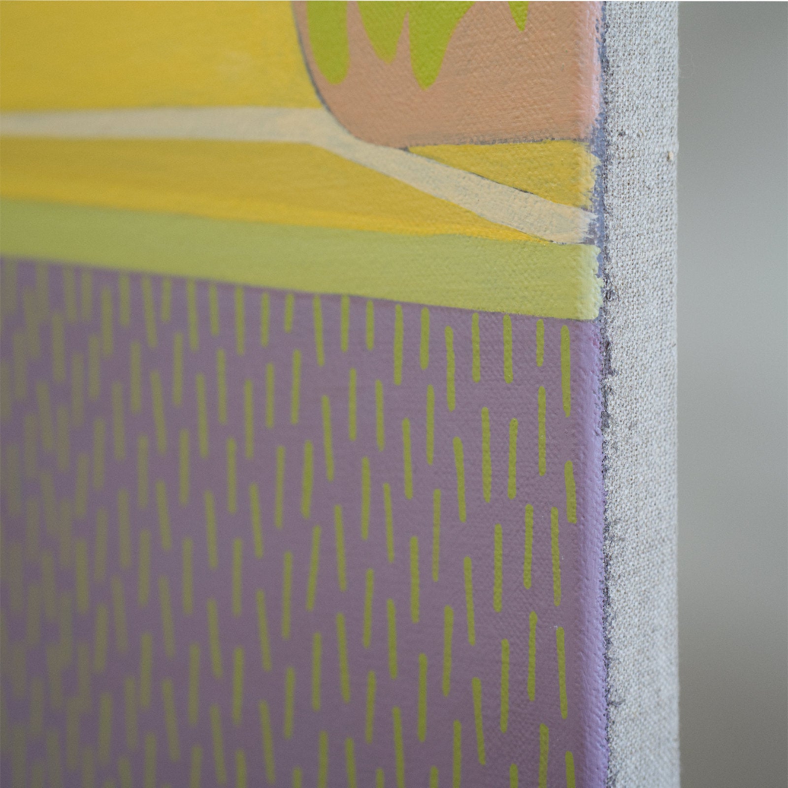 - Painted on canvas, stretched on a real wood stretcher frame.